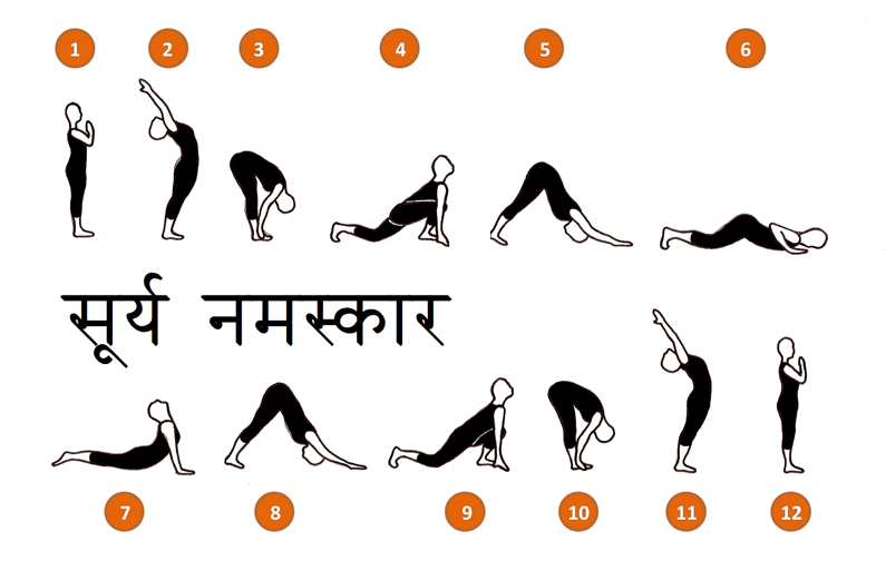 The name, Surya Namaskar is from the Sanskrit सूर्य Sūrya, “Sun” and नमस्कार Namaskāra, “Greeting” or “Salute”. Surya is the Hindu god of the sun. This identifies the Sun as the soul and source of all life.